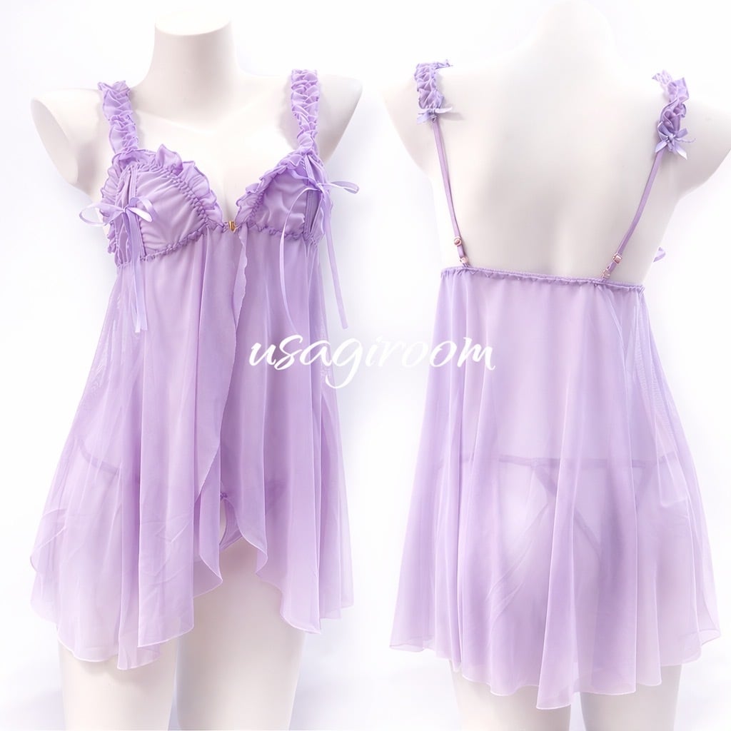 ふわっと軽やかな透け感が魅力の、ラベンダー ベビードール。