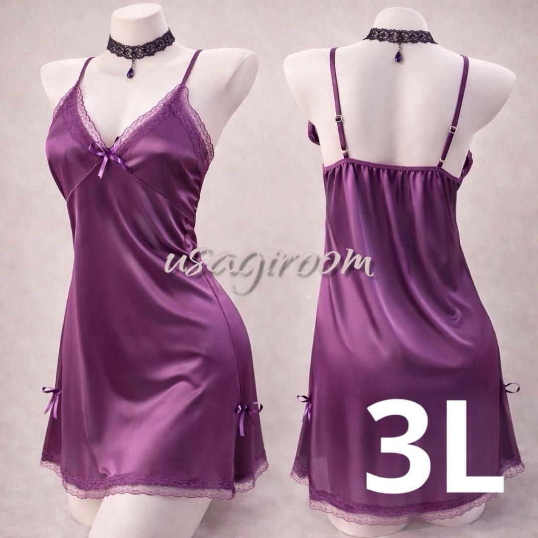 サテン セクシーランジェリー ベビードール キャミソール パープル 大きい